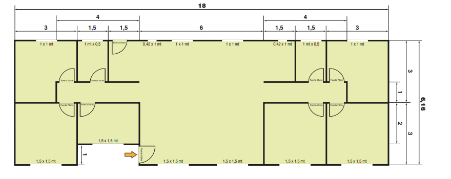 Living/Comedor de 6 x 6 mts. - Pasillos de 1 x 4 mts.